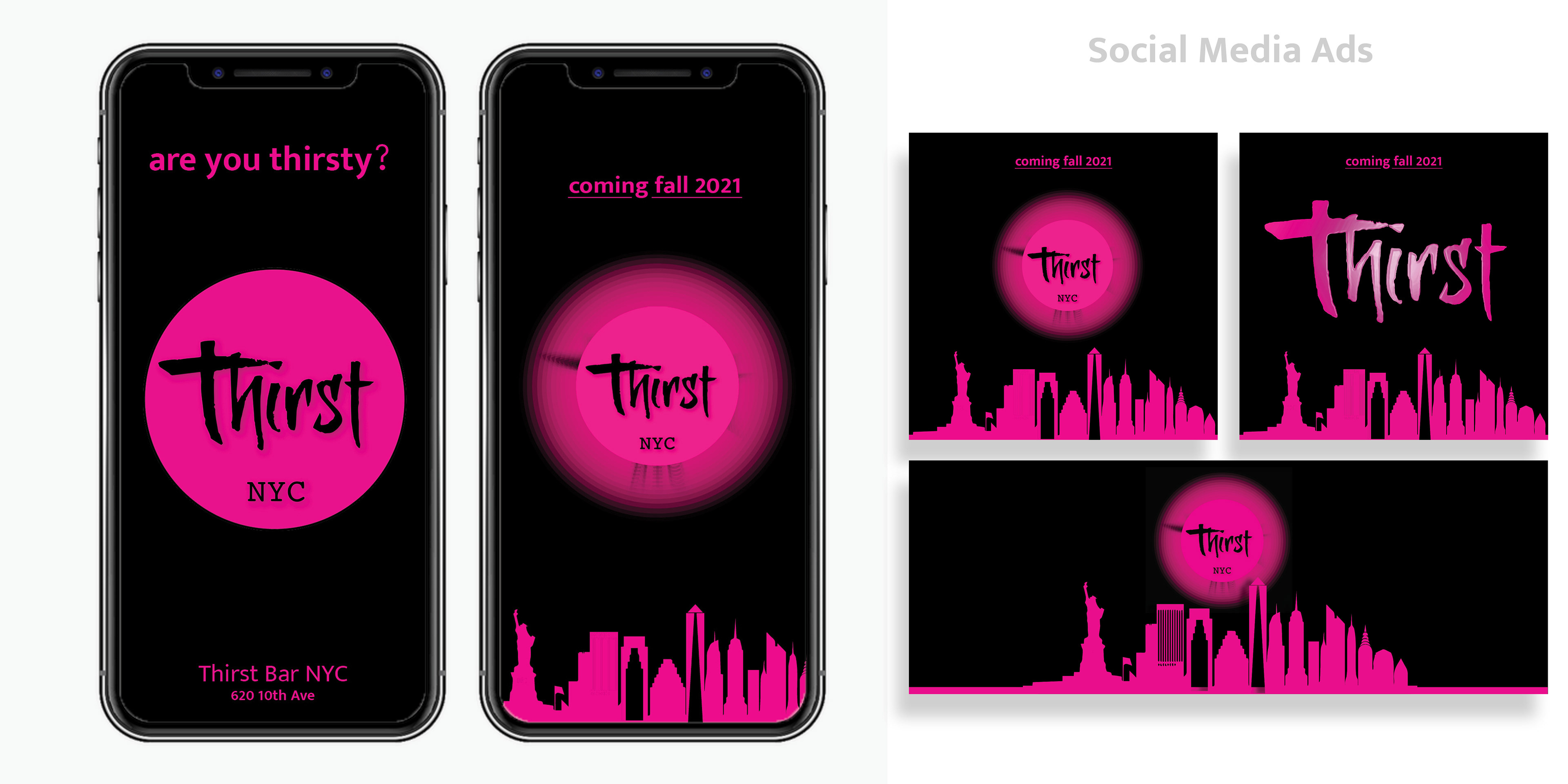 Branded a bar in New York City, Hells Kitchen area. Logo design, website, web ads, social media content, animation, wall mural design,print, etc.